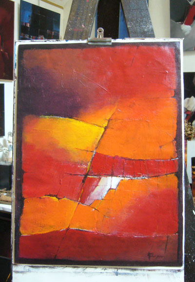 "Je cherche, à travers l’abstraction, à atteindre la simplicité dans la matière, la forme et la couleur, pratiquant la peinture un peu comme une ascèse."